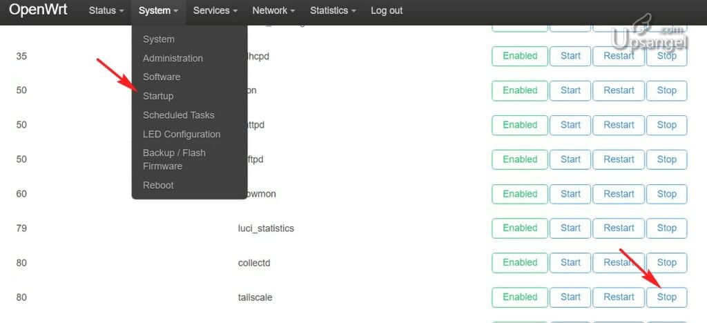 到 System -> Startup -> Tailscale STOP